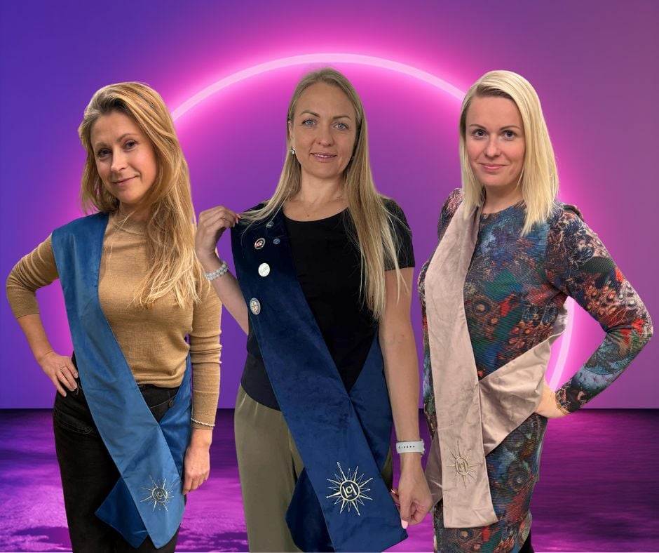 A soft, cozy fabric headband adorned with an elegantly embroidered LCI logo.